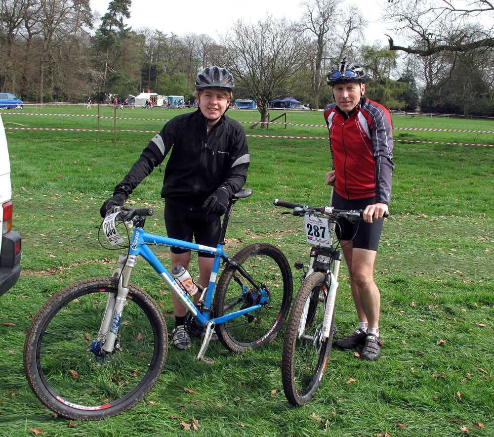 Today was race day. I went up to ride the first round of the Southern XC off the back of Will’s enthusiasm. The race started at 12:30 which threw me. All my races, virtually forever, have started around 9am. I had loads of spare time. Luckily Andy Brooker wanted to come with me. I say luckily because driving up is OK but I never liked driving home alone after a race. With so much time and company I managed to forget my coffee cup (always a part of the routine), my track pump, my hand pump and the lube.