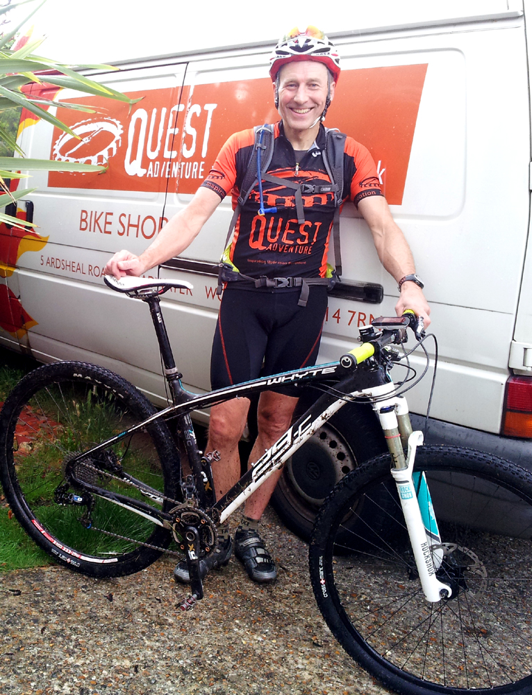 I wanted to celebrate wearing my new Quest Adventure jersey and for some reason I chose the dirt. I don’t know why. Perhaps it is because my closest association with racing jerseys has been on a mountain bike. One of my greatest personal achievements, I remember it well, was walking out of the Ford head office at Dagenham with a £50,000 deal to fund the UK Kona mountain bike team. Our two hot shots at the time were Tracy Moseley and Scott Beaumont. 13 years on they are both still on top. Tracy is leading the Enduro World Series and Scott, consistently ranked top ten in the world, has just secured overall winner in the 2013 Schwalbe Euro 4X Series. Well done guys.